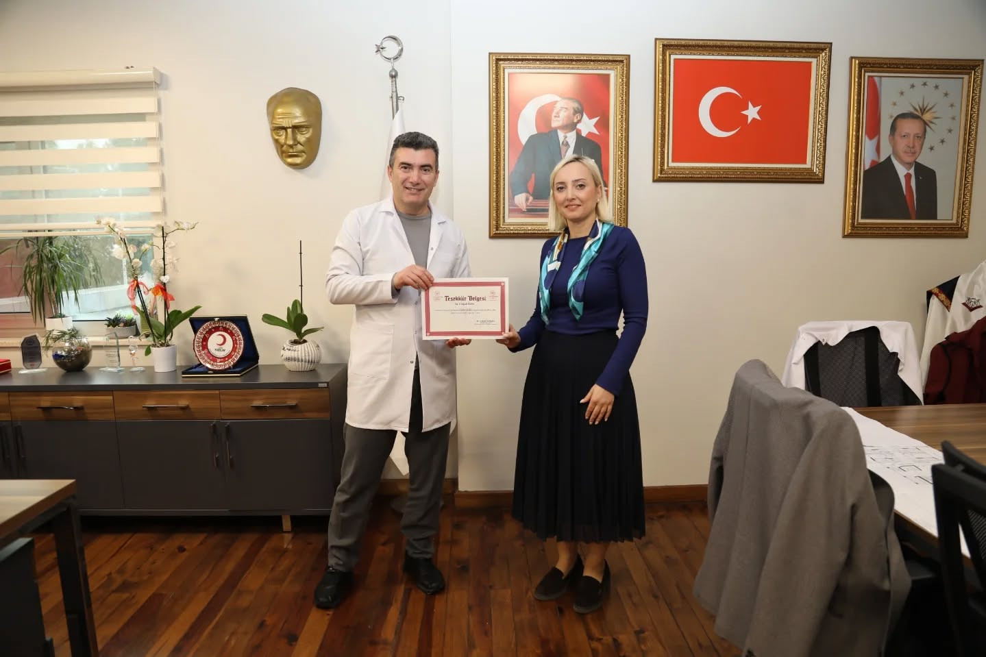 Başhekim Yamanoğlu, “Kendilerine hastanemize sundukları katkılar ve özverili çalışmalarından dolayı teşekkür ederiz. Sağlık hizmetleri sunumunda gösterdikleri özen, hem hastalarımıza hem de kurumumuza önemli bir değer katmaktadır” şeklinde konuştu.