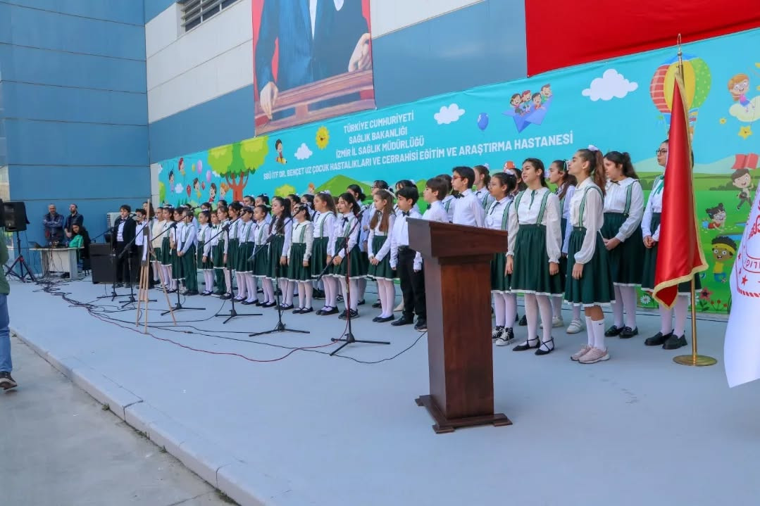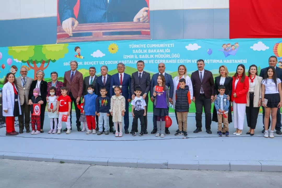 İzmir’in köklü çocuk hastanelerinden Dr. Behçet Uz Çocuk Hastalıkları ve Cerrahisi Eğitim ve Araştırma Hastanesi, 23 Nisan dolayısıyla hastane bahçesinde kapsamlı bir kutlama programı gerçekleştirdi. Tedavi süreçleri devam eden çocuklar ve ailelerine moral aşılamayı hedefleyen etkinlik, protokol üyeleri ve sağlık çalışanlarının yoğun katılımıyla gerçekleşti.