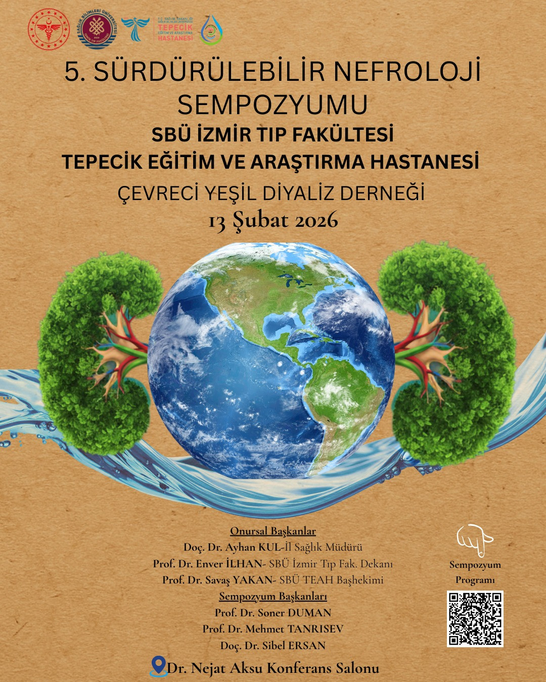 Sağlık alanındaki sürdürülebilir uygulamaları tartışmak amacıyla düzenlenen 5. Sürdürülebilir Nefroloji Sempozyumu 13 Şubat 2026 tarihinde SBÜ İzmir Tıp Fakültesi Tepecik Eğitim ve Araştırma Hastanesi Konferans Salonu’nda yapılacak.